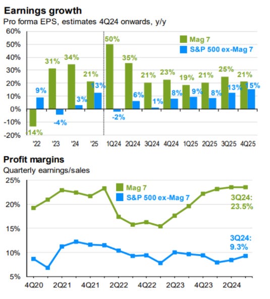 It is not unwarranted either. In the dot-com bubble, it was many fraudulent or unprofitable companies seeing excess returns. This time, the Mag 7 are actually the most profitable companies. The earnings growth and profit margins of these companies far exceed the rest of the index. From that standpoint, there is justification for the concentration, unlike the dot-com bubble.