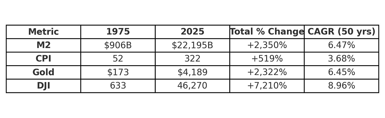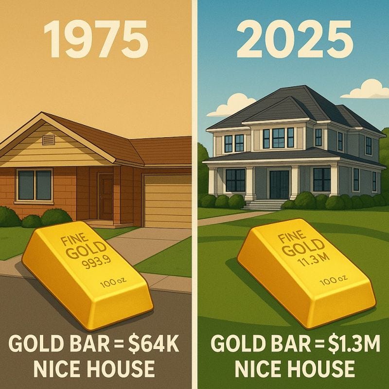 In 1975, a nice home cost $64k, whereas today it would be over $1million. You needed to have assets and not hold cash as the median home price went up 5.4%/yr over the last 50 years. In this sense, the dollar changed appreciably. In contrast, a 100oz gold bar would’ve bought the same asset then and now.