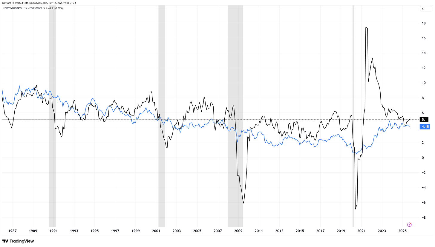 While radical, the Fed shouldn’t have credibility in controlling the economy, in my opinion. While this argument may seem like the Fed is powerless, it facilitates moral hazard through bailouts and drives distortions with excess liquidity. This can exacerbate government waste, build up malinvestment, and decrease growth over time. It can even decrease interest rates on the margin, but overall economic growth and inflation are the real drivers of bond yields.