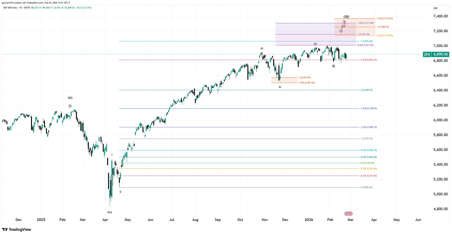 That being said, the SPX hit 7000 and fulfilled all the neccesssary elliot waves for the top to be in technically. This and the lack of labor market weakness are not enough evidence for me to further reduce stock allocation. We are in wait and see mode for the stock market to decide at this point. ~7100 would be a good target if it decides to continue higher.