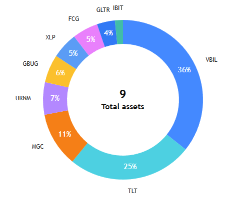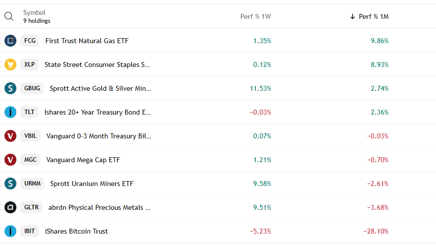 I’m keeping everything the same. We have managed risk in stocks, metals, and uranium over the past months. The relatively small allocations hedge against prices going down. We have managed to outperform the market with over 50% in bonds. Next month, we may make moves in stocks, metals, and uranium depending on price movements.
