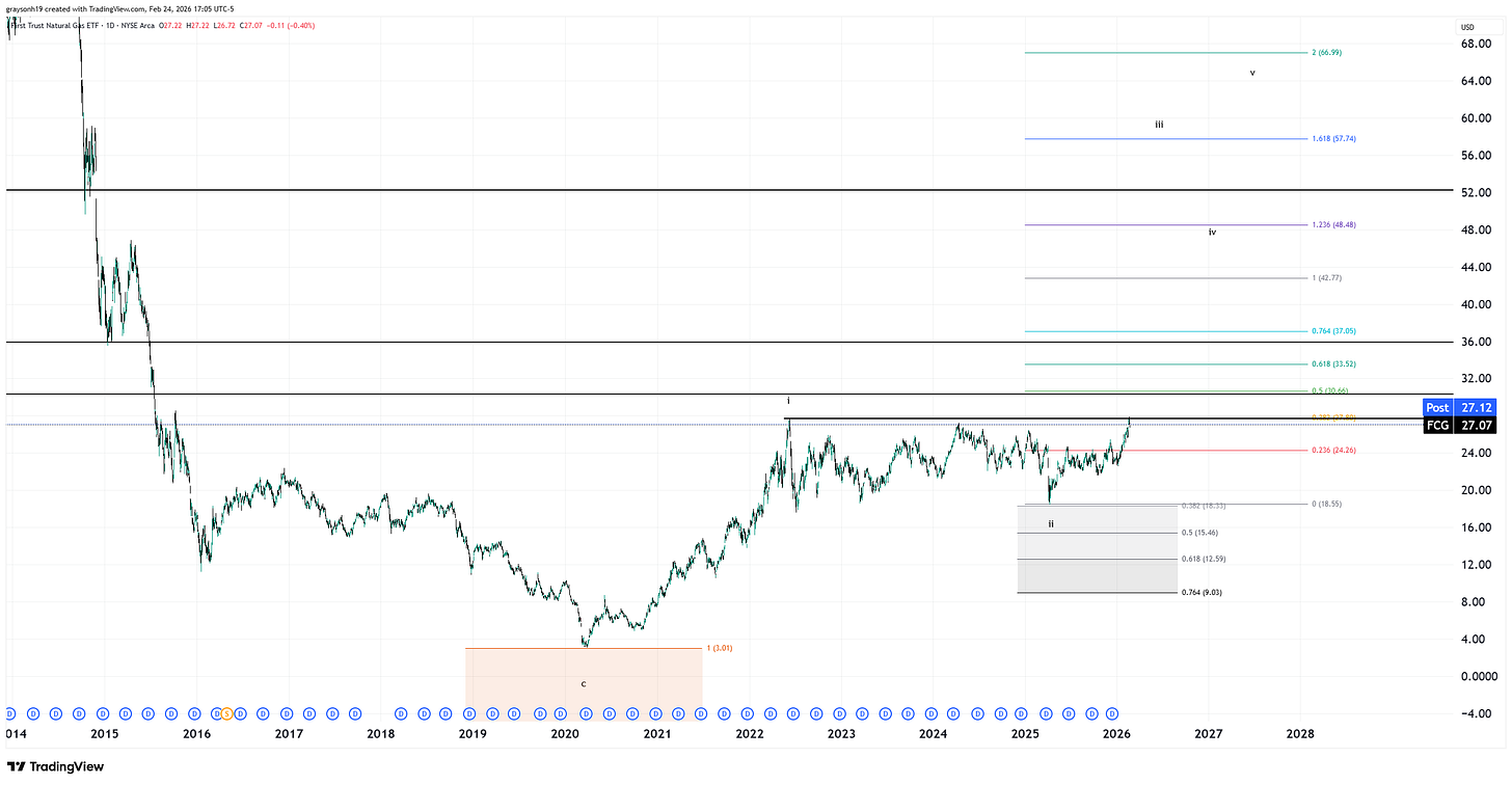 Further, the addition of FCG helped the portfolio continue to outperform the general market. It tested but was unable to break out over its 2022 highs this month. If it does, there is some upside potential. The first target is 42, and the next targets are 57-67 if it’s an impulsive 5-waves up. Oil/gas remains an unloved sector compared to the overvaluation of the standard market, as I discussed in a recent piece, No Love.