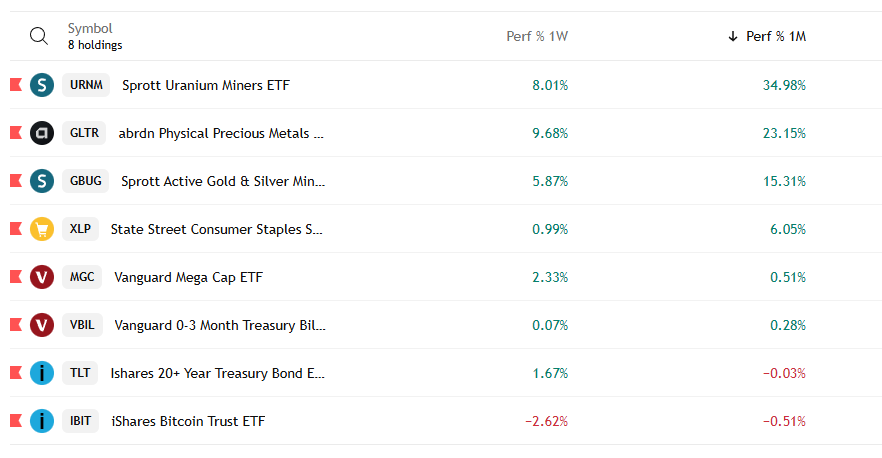 The decision to add URNM was timely and has immediately paid off, up 35% in one month.