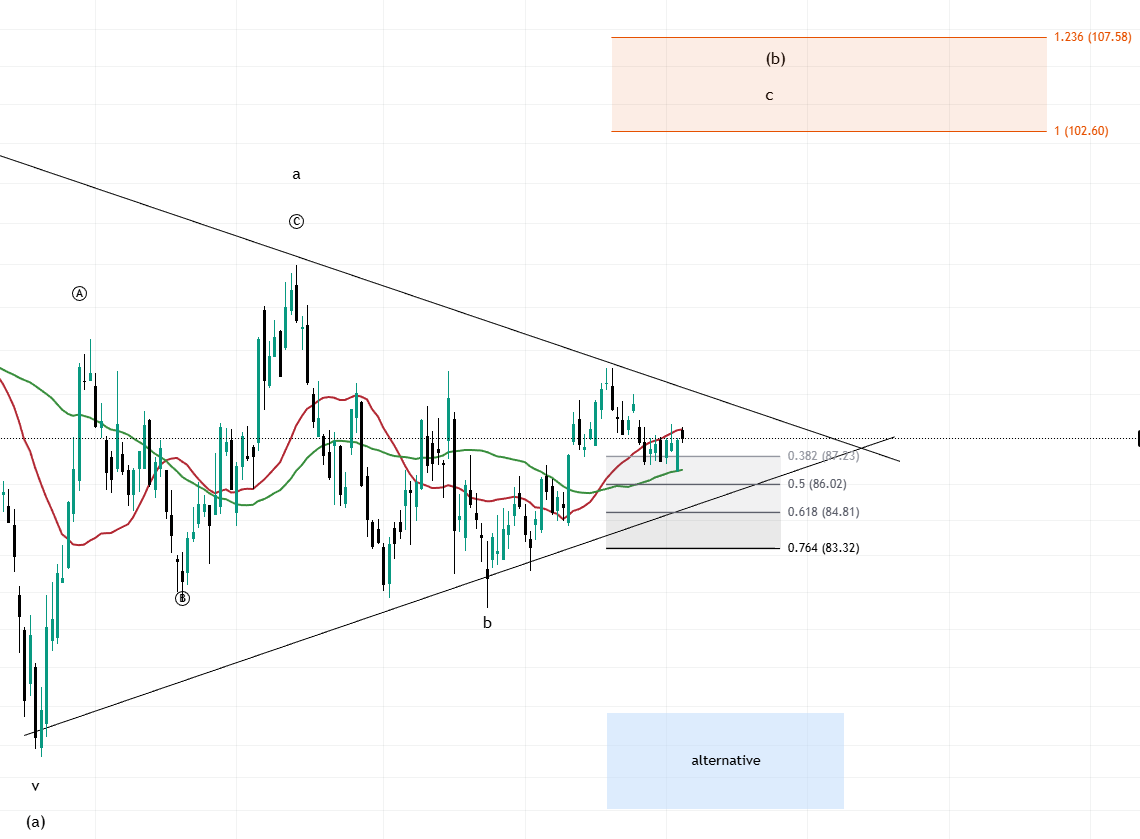 Our initial wave 3 targets for a breakout have been hit already, warranting some profit-taking/rebalancing. However, if the sector is truly in a large impulsive breakout, we could see targets as high as 105-126. These are larger wave degrees and may take some time to play out if they do.