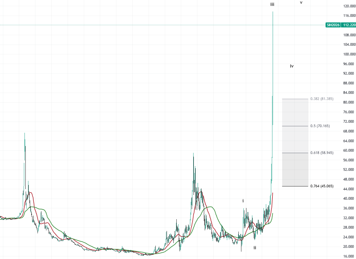 It's a tough call on Silver and Gold. Technical Traders is along your line of thinking. David Skarika thinks since the junior minors/penny miners haven't "launched" much there's still upside (theory being that masses will search for bargains in this parabolic move). He hesitantly recommended selling 10 percent of positions which I'm starting.
