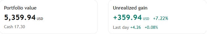 I started this portfolio in February for myself, but for simplicity, I’ll mark the first day of March as the beginning of this $5,000 model portfolio so we have some time to see how it’s fared, and then we can track into the future. Whole shares are required in the TradingView program I use, so here is the breakdown of the actual starting allocation on March 3rd.