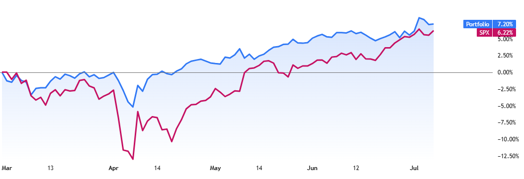 In the first 4 months, it has managed to reduce the max drawdown and return slightly more than the SPX benchmark.