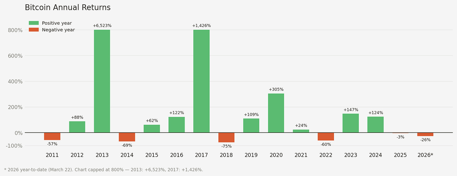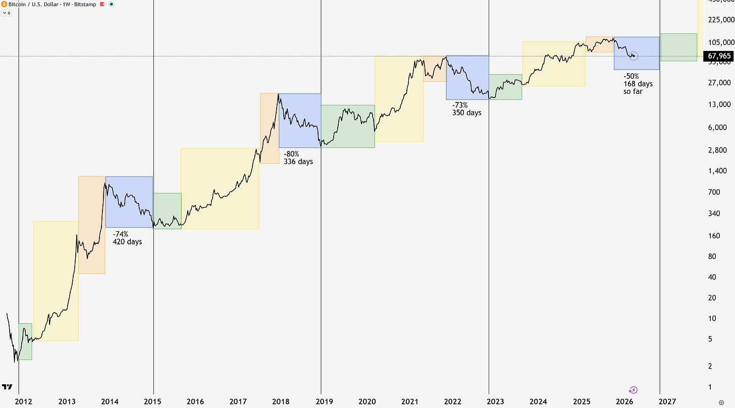 Bitcoin has gone down a lot recently, already having crashed 52% off the October 2025 high. Every bear market there’s a lot of talk about it being the end of bitcoin. On the flip side, I’ve seen many people getting so much hope when it rallies trying to call the bottom along the way.