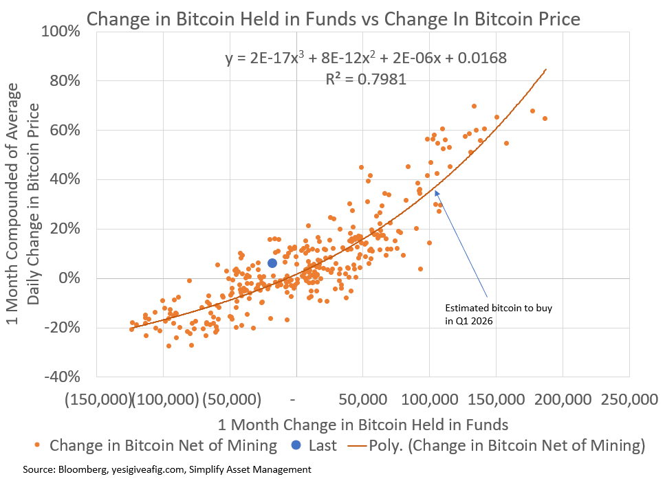Flows turned negative at the end of 2025, which predicted the slide in price. Recently, this relationship has fallen, meaning liquidations and other factors were likely driving the most recent price declines, not necessarily that the data doesn’t apply anymore. This could mean that we are closer than not to the bottom, but that is speculation. How can we know?